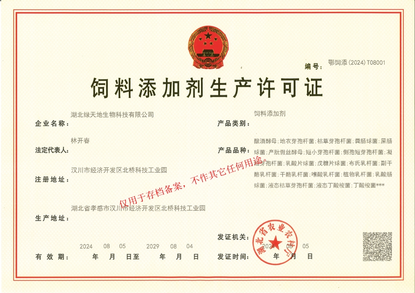 湖北綠天地生物科技有限公司 (簡稱綠天地公司)投資7000萬元,擁有25000平方米的廠房和國內(nèi)先進的設備360臺套,建有微生物發(fā)酵、發(fā)酵冷凍干燥、低溫造粒等8個車間,發(fā)酵罐總容量450立方米,專業(yè)的飼用級益生菌發(fā)酵生產(chǎn)基地。 公司已通過IS09001:2015質量管理體系認證。 綠天地公司得到了華中農(nóng)業(yè)大學、中國農(nóng)...